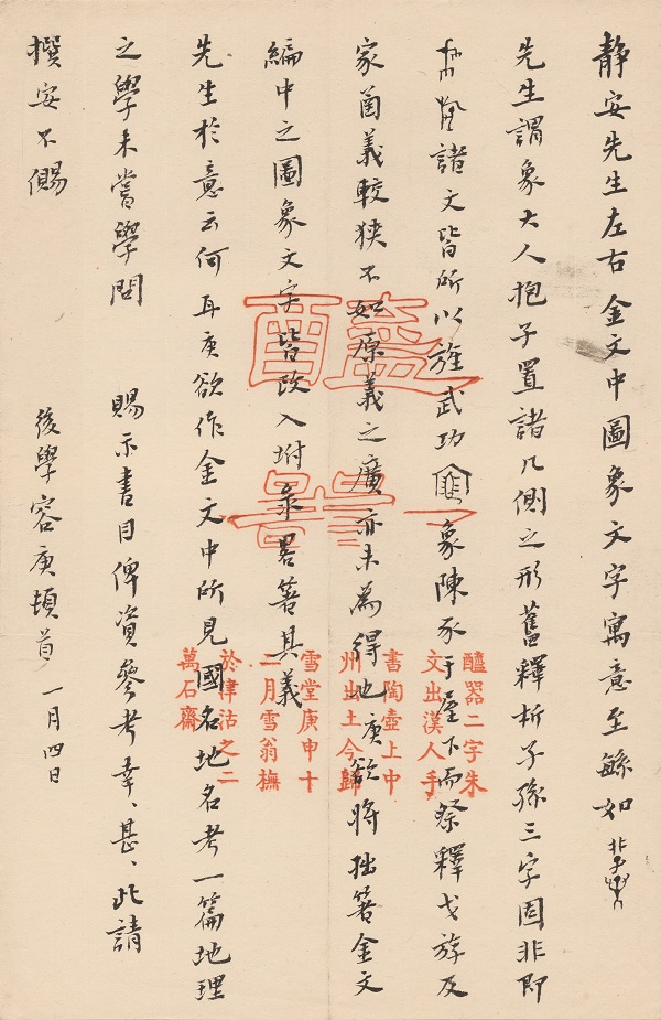 前谭殊快。鄙著《玉溪年谱会笺》,刊刻将次断手,弁首鸿文,拟得君加墨数行,以志纪念。序中但述我辈交谊及十年来踪迹,惟有一意甚佳,似可畅发。弟之学有宗主而无不同,生平极服膺康成家法,而诗谱、诗笺皆郑氏所创。此书其于谱也,经纬时事即用诗谱之例;其于笺也,探索隐赜即用诗笺之例,似可即以此义引端。至两浙学派,亦可略叙。浙东自梨洲、季野、谢山以迄实斋,多长于史;浙西自亭林、定宇以迄旁出之东原、若膺,多长于经。浙东博通,其失也疏;浙西专精,其失也固。弟初从若膺、怀祖入手,后始折入季野、实斋,故虽尚考据而喜参名理,有浙东之博通而不至于疏,有浙西之精专而不流于固,此实弟一生为学之大旨,于序中能插叙数句,尤善。此外则君对于学问之见,及与弟相同之点,皆可一为发挥。至关于玉溪,略为映带可耳,以益葊诸序已详言之也。近见君文兴殊酣,故敢以为请。如须阅原书,容当将红样呈览,但所出未全耳。手肃,敬颂