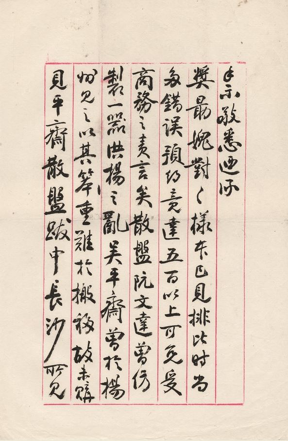 手示敬悉,乃承奖勖,愧对愧对!样本已见排,比时尚多错误,预约竟达五百以上,可免受商务之责言矣。散盘阮文达曾仿制一器,洪杨之乱,吴平斋曾于扬州见之,以其笨重,难于搬移,故未购,见平斋散盘跋中。长沙所见,或即此器,决非原物也。先生以为何如?