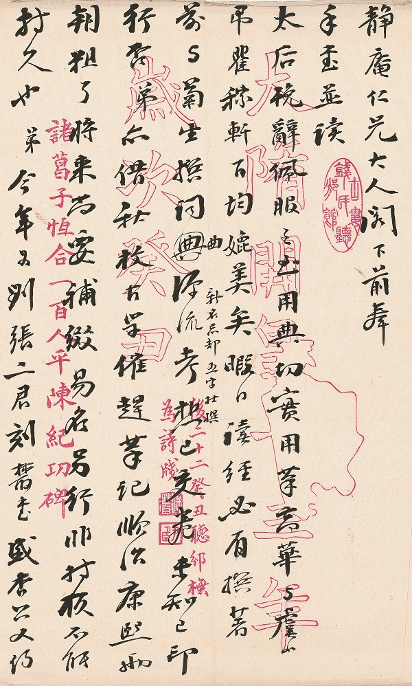 大喜,欣慰之至,敬贺敬贺。敝同年金息侯前次信来,称台从北上,渠处可以下榻,因公回海宁,未及转达。顷又得其十五日信,称王、杨二君均久无北上之信,内廷诸公颇为盼望,属转致意等语,敬以奉闻。祗请