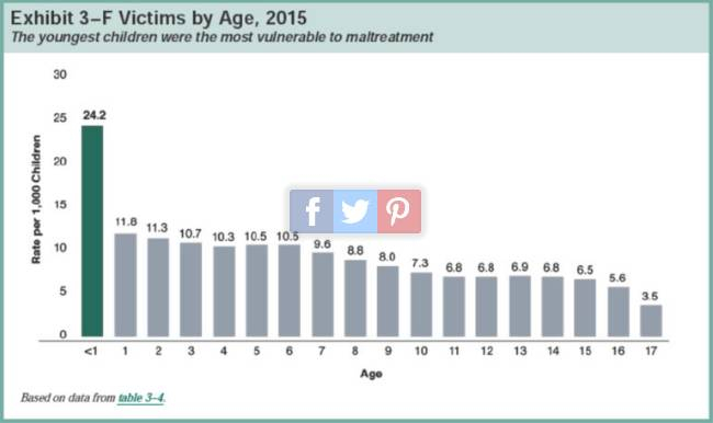 超过四分之一的受害者年龄小于3岁。最年幼的儿童是最容易遭受虐待的人,年龄小于一岁的儿童受害率最高。