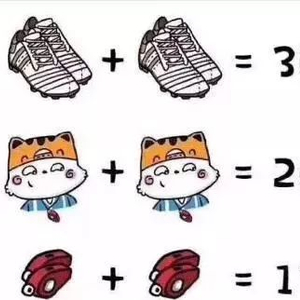 这道在朋友圈和微信群里热转的题目是一张图片,里边有四个算式,等号左边没有数字而是一些具体的物品,等号右边除最后一个算式外都有具体的得数,题的意思就是让学生通过分析和运算前三个算式,从而得出最后一个算式等号后边的数。
