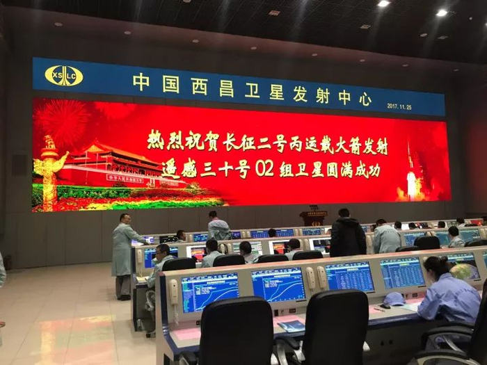 北京时间2017年11月25日02时10分,我国在西昌卫星发射中心用长征二号丙运载火箭,成功将遥感三十号02组卫星发射升空,卫星进入预定轨道,发射任务获得圆满成功。