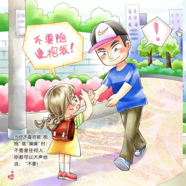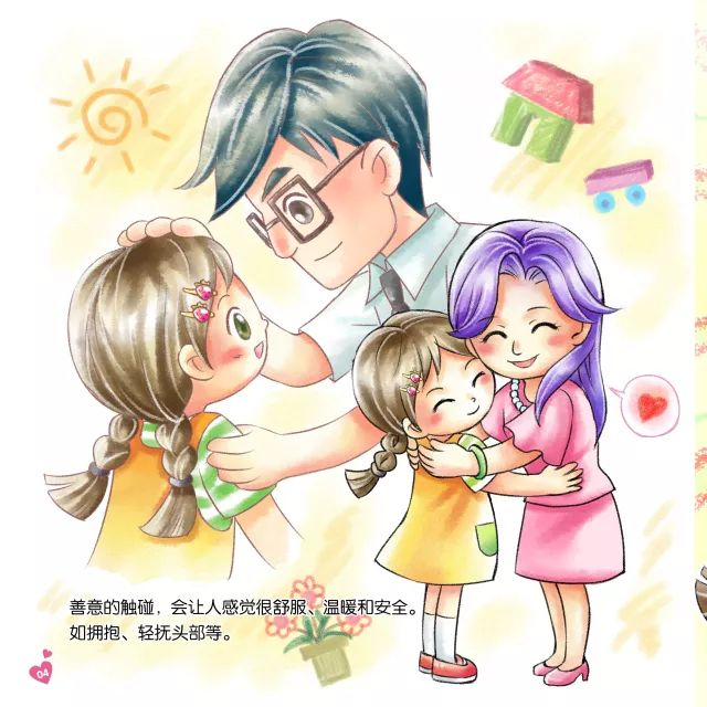 跟孩子一起列一个“爱心圈”名单,这个名单上的人是可以拥抱、亲亲的,是孩子喜爱并信任的人。