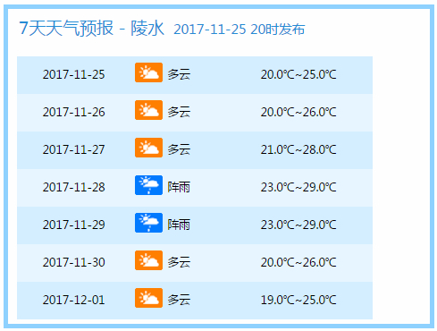 未来7天部分市县天气情况如下:
