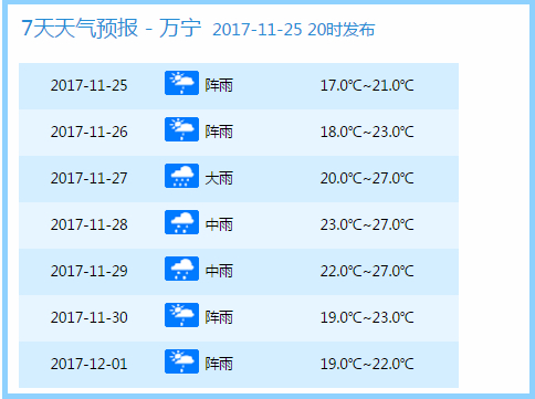 来自海南气象局的预报显示: