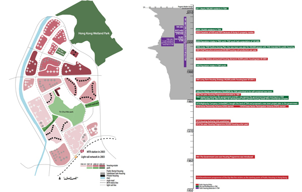 天水围不同小区的建成时间(左图)与香港公屋政策的发展(右图)。 作者绘制