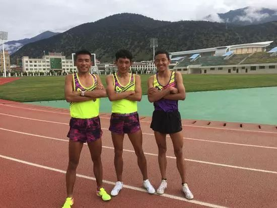 出征全运会之前,西藏中长跑队三名主力在林芝高原训练基地合影留念,从左至右依次为:米觉尼玛,多布杰,旦木真次旺