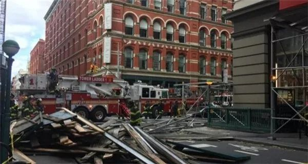 纽约一地铁口建筑脚手架因强阵风坍塌 致5人受伤