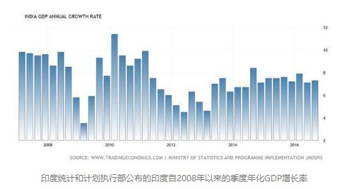 印度经济此前因休克式的金融疗法已经使得本国经济动荡不已,再加上在2017年的经济总量增长率已经有连续二个季度暴跌至新低(5.7%),经济状况十分脆弱。在这种情况下,印度为更好刺激经济增长不得不降息,印度央行在三个月前(8月2日)开始降息25个基点,成为亚洲国家近期唯一降息的国家,可见印度经济已经顶不住了,因为面临美国的加息、缩表,任何国家都不敢轻易降息,除非万不得已。