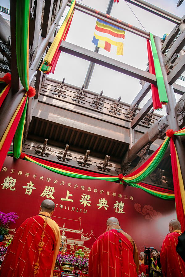 11月25日9时30分,“上海玉佛禅寺消除公共安全隐患保护性修缮工程观音殿上梁典礼”举行。该修缮工程将在年底之前全部完工,届时,上海玉佛禅寺将以全新的面貌迎接信众、游客。