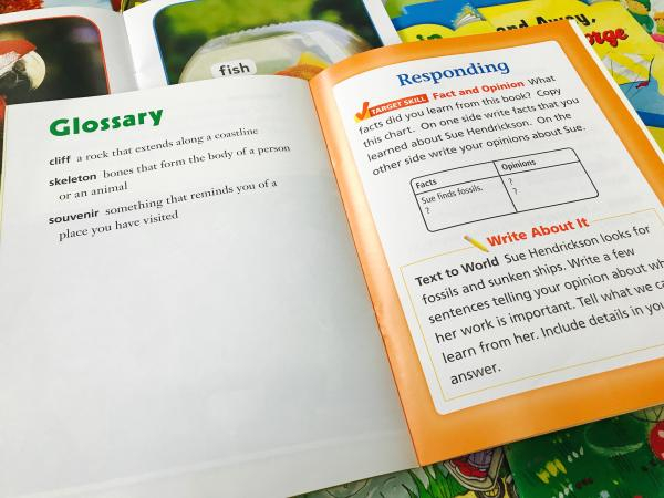 “和其他阅读产品比,我觉得这套教材的特点在于导读和自学部分设计得非常完整。大众类读物往往没有这些部分,纯粹是趣味阅读。”HMH大中华区业务总监华裔向澎湃新闻记者表示,“比如《哈利·波特》和各种绘本,因为没有词汇表、没有阅读重点或练习,纯粹看你出于兴趣读了多少。但是这套书是以教学为目的来设计的,所以每一本书的教学目标很清晰,包括文本涉及的语法有什么、锻炼的理解能力是什么。所以家长、学生读完后可以对自己的(英语)掌握情况进行比对。”