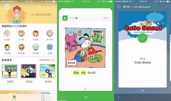 比如,孩子可以先在APP里对绘本进行泛听,如果发现某一个词听不出,可以点一下这个词,打开查词功能。还有一个版块叫精听,反复听每一页的内容,听完后还可以在APP上进行练习检测。