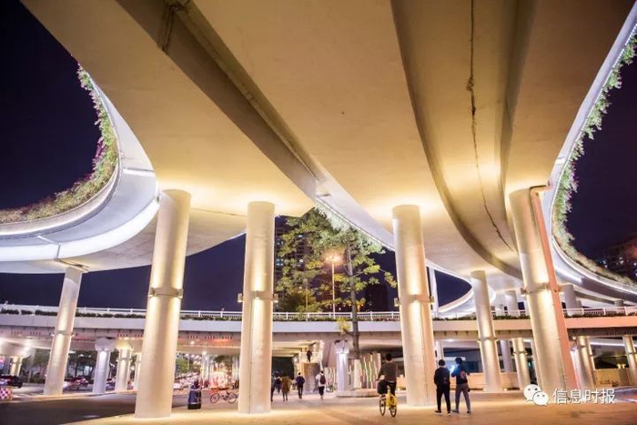 到了晚上,桥墩中部的LED壁灯亮起,俨然变成了一条发光的长廊。有市民说,对比好大,感觉像是做梦,这是哪儿?宫殿吗?