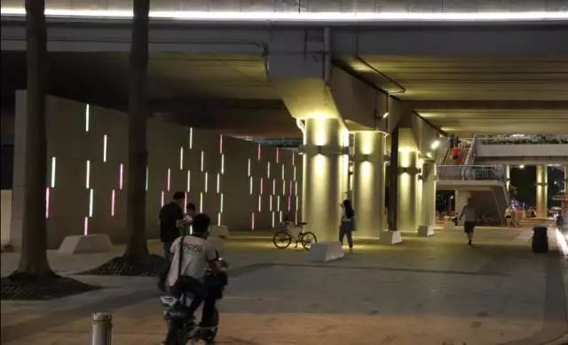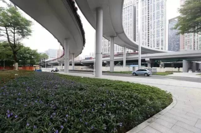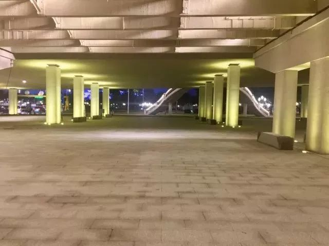 以前的猎德大桥南段桥底是一个封闭停车场,外围是绿化用的灌木丛,现在改造后完全变了模样,地面铺设了花岗岩,桥下也进行了喷涂翻新。