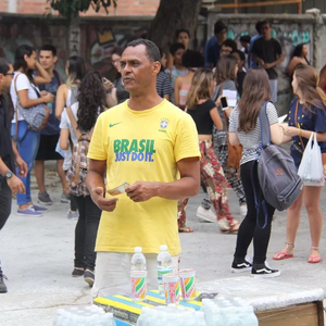 11月的里约热内卢,正午的阳光已有些刺眼。里约州立联邦大学门口,等待入场的考生三三两两聚在一起,有的考生坚持复习,更多的考生则摆弄着手机。卖冷饮的大叔高声地吆喝,摊位上的水笔也比往日贵了两倍,发传单的姑娘微笑着将复读补习班的广告递到大家手里,也是热闹。