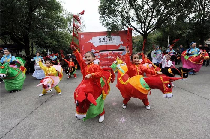 除了环镇东路之外,养正学堂里表演着宁波走书,周边村落里开设了社戏专场,它山堰边,跑马灯、舞龙等民俗巡演也吸引着众多市民的目光。
