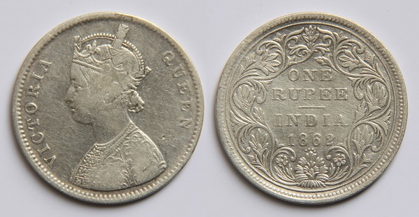1862年的印度卢比硬币,此时维多利亚还没有称帝