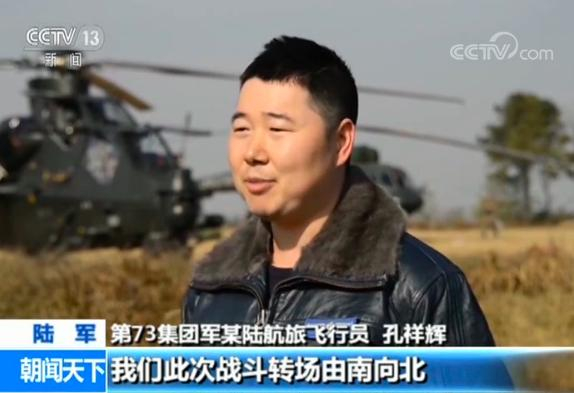 第73集团军某陆航旅飞行员 孔祥辉:我们此次战斗转场,由南向北,航程将近一千多公里,整个过程经历了不同的气象条件,我们主要是采取灵活变换队形,调整梯队间的间隔,确保战斗转场安全顺利。
