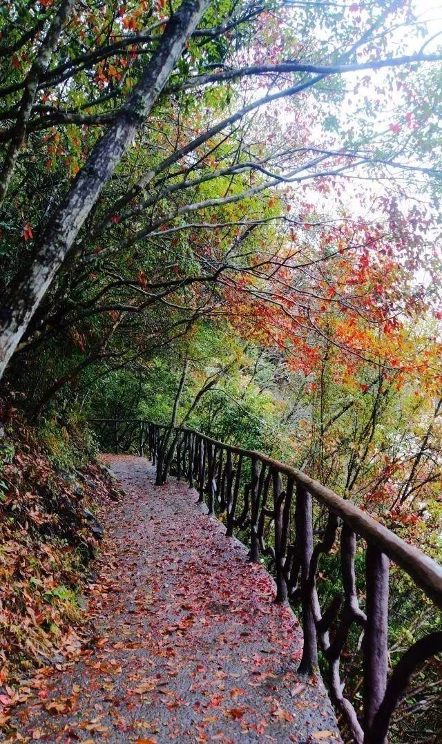 【推荐理由】:沿着栈道徒步而行,一路红增翠减,红叶夹道相送!