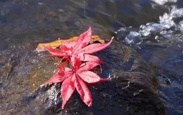 飘落的枫叶顺着溪水而下