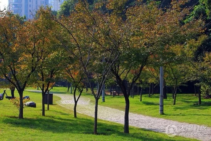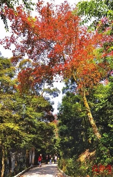 ▲福州森林公园:穿越翠绿 暖冬相约枫叶红