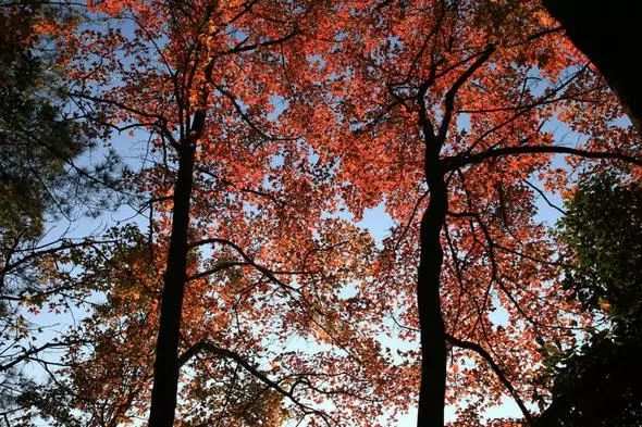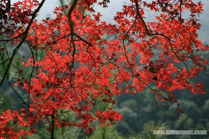 虽无北方满山遍野的大气,但是这儿的红叶却多了婉约、含蓄,和南方人的气质不相谋和。