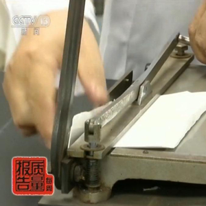 检测人员介绍,纵向湿抗张强度,是纸巾纸重要的使用性能指标。消费者可以简单地自行评判这项指标的大致情况:在家可以把一张纸放在盆里,一个不合格的产品,整个泡在水里完全拎不起来。在使用不合格产品的时候,用它来擦试嘴巴、汗水的过程当中,跟拎起来一样很容易破裂。同时它会有一些小的纸毛粘在嘴巴上。