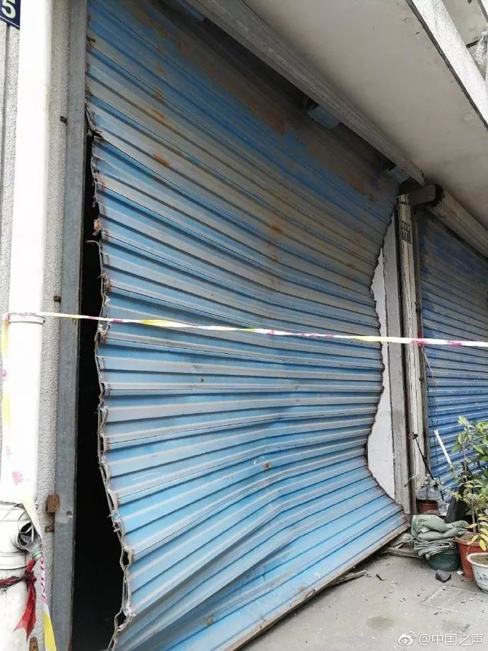 另据@中国之声 消息,记者在现场附近看到,现场拉起了警戒线,清理工作正在进行中,受到爆炸波及,附近建筑的玻璃,卷帘门均受损,有的房子墙体被震穿一个洞。
