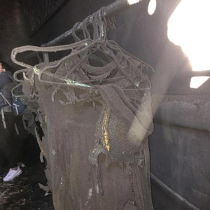 澎湃新闻在公寓内观察到,公寓的墙体和物品均被烟熏黑,整个公寓内依然有很浓刺鼻毒气味道,楼道里摆放的衣服已经被烟气和毒气熏到发黑发烂。狭窄的安全通道内杂乱无章,部分房间内还有许多租户遗留下来的物品,部分房间贴上了封条,楼道内顶棚有许多坠落物,地下一层冷库已被封锁,公寓旁的门诊和饭店均已关闭,公寓内仍还有租户留下的物品。