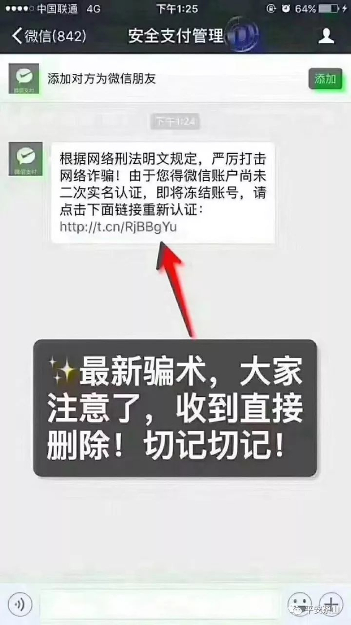 11月24日,广州市反诈中心接到群众举报,称其微信收到账号名为“安全支付管理”发送的消息,要求点击其中的网络链接进行微信二次实名认证,否则冻结其微信账号。
