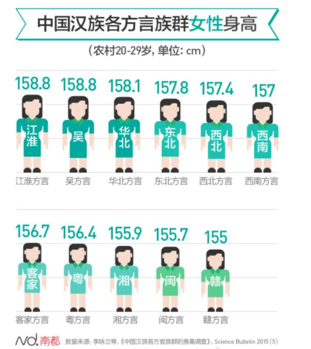 中科院旗下学术杂志《Science Bulletin》曾经发表过一部学术报告,叫做《中国汉族各方言族群的身高调查》。