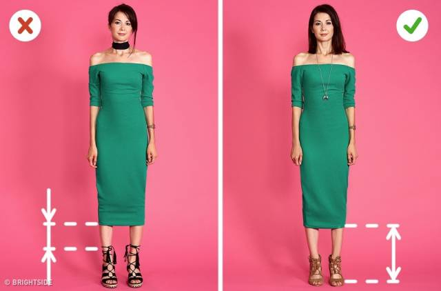 一双合适的高跟鞋可以让你看起来更高,露出脚踝的部分能够有效延续腿部的终点,让下肢看起来更长。