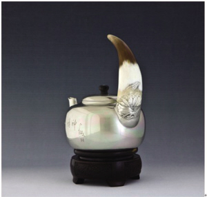 石岩自幼喜爱绘画,15岁起自学木雕至今,1991年起师从岳父杨喜华学习锡雕锔瓷技艺,后又自学玉雕、牙角雕、琥珀雕刻及金银首饰制作工艺,正因为这些技艺做基础,对锡雕创作起到了很大的辅助作用。 在工作实践中于2004年发明了纯锡到0.35mm的独特方法,从而使锡雕作品也能像金银一样做花丝镶嵌,填补了锡雕技艺的一项空白。运用玉雕技法于2000年独立完成了“锡包玉壶”,史称“三颗玉”(据史料记载“三颗玉”是由明末清初人士朱坚发明,此壶需要紫砂、玉雕、锡匠三人合作完成,朱坚之后无传人)使这一失传百年的手艺呈现在世人面前。 在瓷器、紫砂修复方面,于2009年发明了铜骨二次注锡技艺,成功解决了紫砂壶把、瓷杯把手断裂缺失用锡补不牢固、易松动的难题;利用牙雕木雕技艺解决了锡器导热快的特性导致的烫手不实用缺陷,独创了锡壶提梁隔热镶嵌及小叶紫檀木雕提梁镶嵌;利用金属镶嵌工艺在锡壶底部镶嵌冷轧钢板,解决了锡壶不能传导电磁,不能在电磁炉上煮水的问题;利用软陶的可塑性、低温固化及色彩丰富的特点解决瓷器窑裂不能修复的问题、变废为宝;利用锡的延展性修复瓷器裂缝;运用锔瓷和焊接手艺在瓷器残缺处打埋暗钉做铜结构(受钢筋混凝土浇筑启发)然后堆焊锡料,补缺,再补上雕,成功创作了建盏修复作品《荷叶滴露》、汝窑瓷杯等系列作品;运用雕瓷技法二次创作窑粘残次品,创作出建盏《荷坚强》瓷雕作品。 2009年,突破传统技法将锡雕技艺与瓷器结合创作的作品《努尔哈赤》被辽宁省博物馆收藏; 2014年10月入选《辽宁文史记忆:非物质文化遗产》大型文史丛书; 在2017年4月649期《当代工人》发表论文《浅谈辽宁锦州手工锡器制作》。 作品: 《犀牛望月壶》 硕大圆润壶身,镶嵌西藏白牦牛角独把手,如一头犀牛举头仰望夜空,两弯流做摆尾状,黑牦牛角雕壶钮,起肩收盖如牛背隆起有力,壶把连接处牛角与锡一体雕刻荷叶,使不同材质融为一体,手刻书法家魏哲亲笔题字。 作品:《鲤鱼跳龙门提梁壶》 全手工,千锤文镶嵌紫铜双鲤鱼戏水,寓意“好事成双,年年有余”,直流切水干净利索。壶钮锡雕莲蓬,寓意“多子多福”。提梁造型式龙门,采用独门技艺,铜芯梁骨二次铸锡技术一体镶嵌象牙,紫檀老料,雕双锦鲤跃龙门,寓意“事业有成,梦想成真”。 |