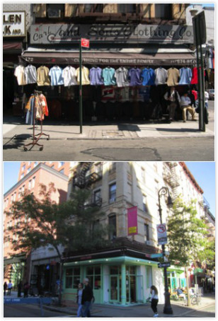 纽约下东区的果园街上,犹太裔移民开的廉价服装店(上,Richard Rosen 摄)被时髦的墨西哥餐厅取代(下,Sharon Zukin 摄)。