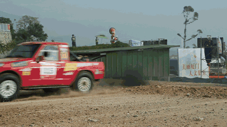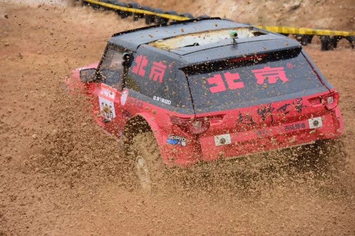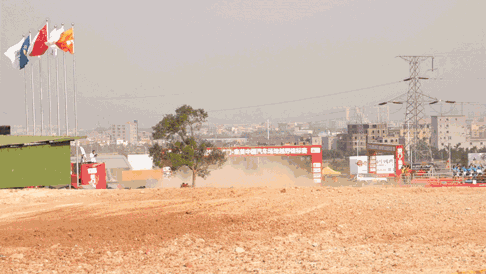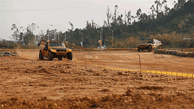 昨日,率先开赛的是排位赛。圆形越野跑道上设置有驼峰、双边桥、波浪路、V形沟、深水池等障碍物。