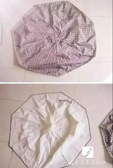 6、伞在折叠的时候,要捏住伞的顶端,尽量不用汗渍的手去摸伞骨折叠部位与伞面交接的地方,以免日后那里有印迹,影响美观。