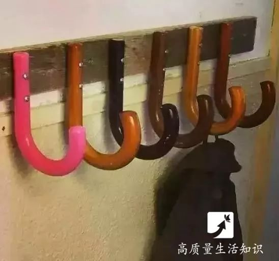伞把其实是一个非常实用的挂钩,像这样做成挂钩在牆上,挂个衣服帽子都很合适。
