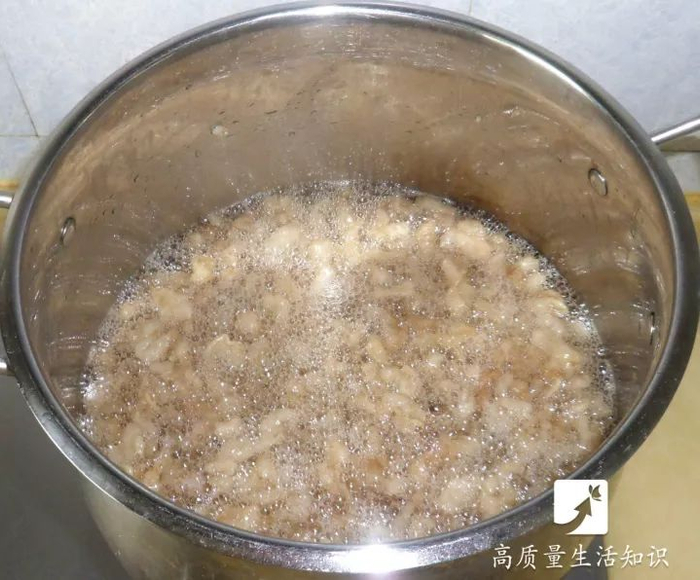 把猪肉放到淘米水里,浸泡五分钟,这时我们会发现,淘米水表面浮起许多脏东西。再然后,只要把猪肉放水龙头下,冲洗一遍就可以啦~