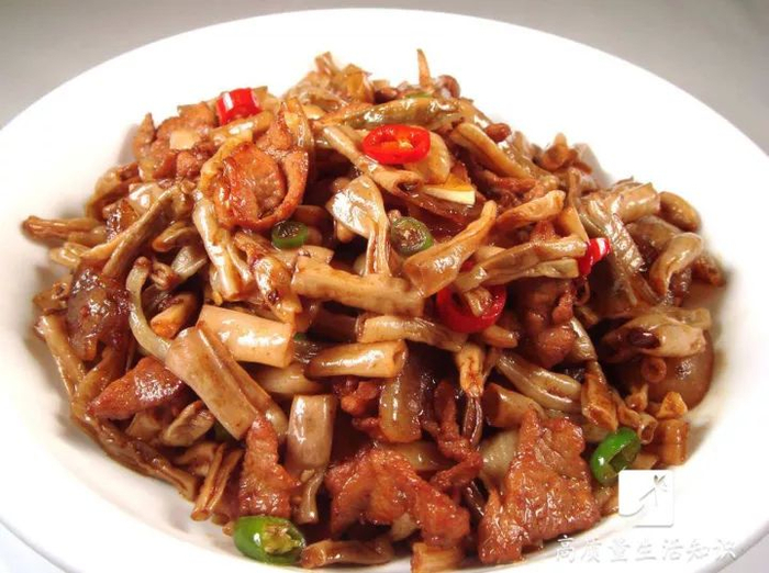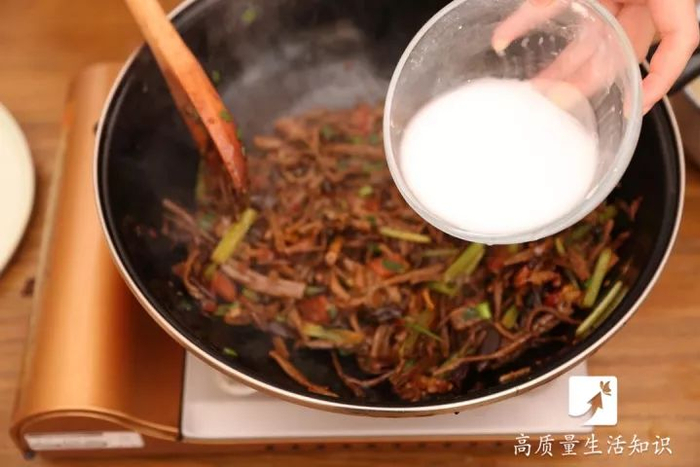 油热后,将肉倒入锅内,先迅速拌炒,然后再加少量水翻炒,并加入其他菜炒熟即可。这样炒出的肉比不加水的要柔嫩得多。