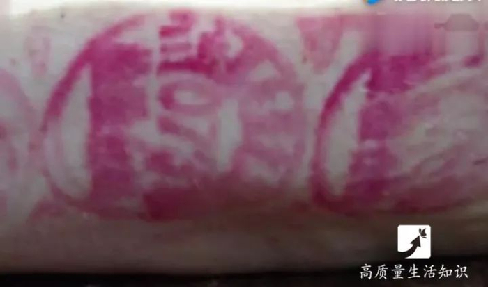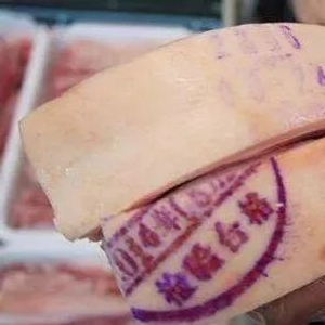 更值得一提的是,红色章代表的是母猪,蓝色的章代表公猪,只要盖有圆形的章的都是安全无危害可以直接食用的。