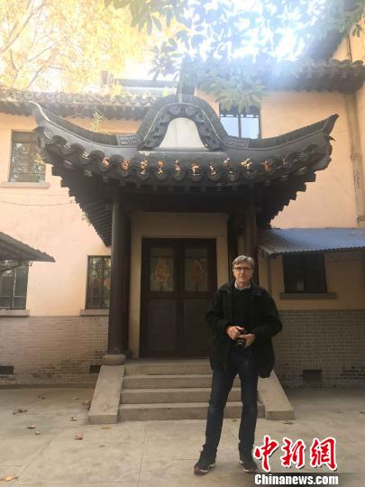 克里斯·马吉在宁海路5号原南京安全区国际委员会总部旧址留影。 潘琳娜 摄