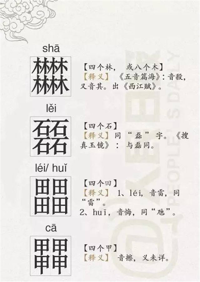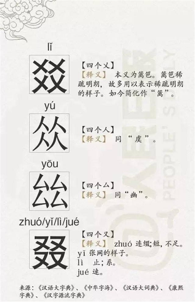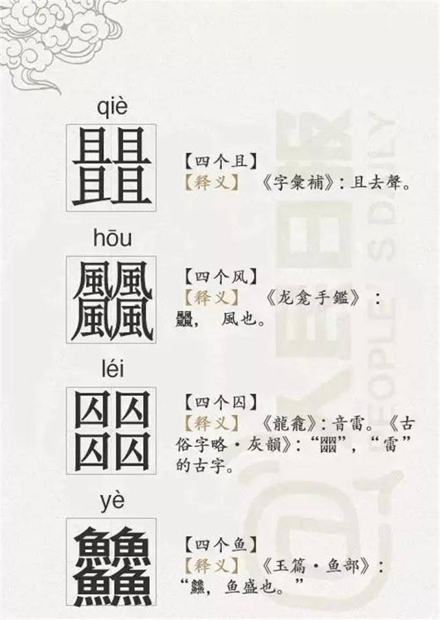 我们在网络上经常看到一些四叠字,可是这些字怎么读?又有什么意思呢?小编给大家找到了一些四叠字,你认识几个?一个都念不出来的默默转走学习吧!