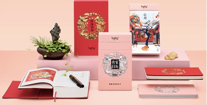 今年《传家日历》推出了两款礼盒,颜色有传统的中国红和清新的女神粉,礼盒内容其实是增加一本名为《时光琐记》的手帐本。手帐本内页印有《传家日历》的全彩插画,整体风格和内容都很“传统古典”的《传家日历》礼盒,基本上也是优质内容延伸出周边产品的类型。