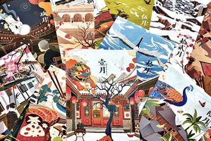 《传家日历》是以中国传统文化为题材的全彩插画为内容,笔触细腻,配色丰富,每张都可以像年画儿一样贴在墙上。插图的内容包含岁时节庆的场景,四季节气的风物,大江南北的民俗、食物,俨然是一本中国传统文化的插画书,一直有批自己的忠实拥趸。