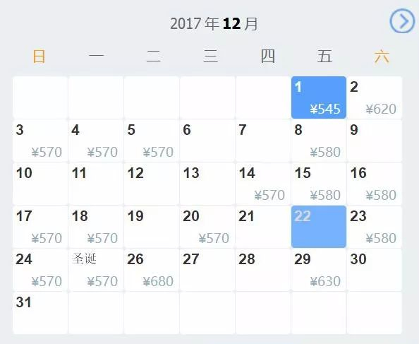 1212月最低票价545元
