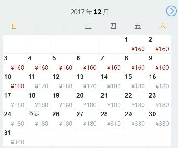 0312月最低票价160元