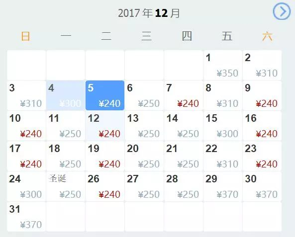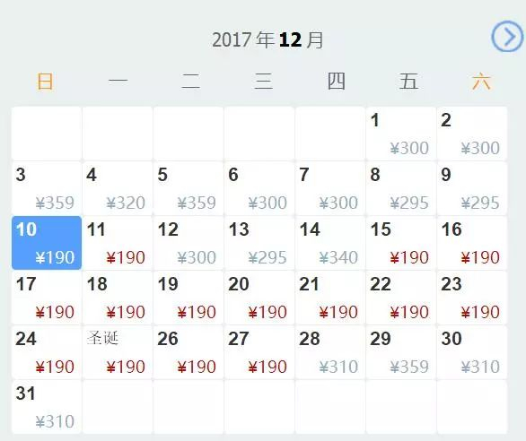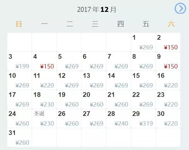 1112月最低票价240元