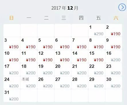 0812月最低票价190元