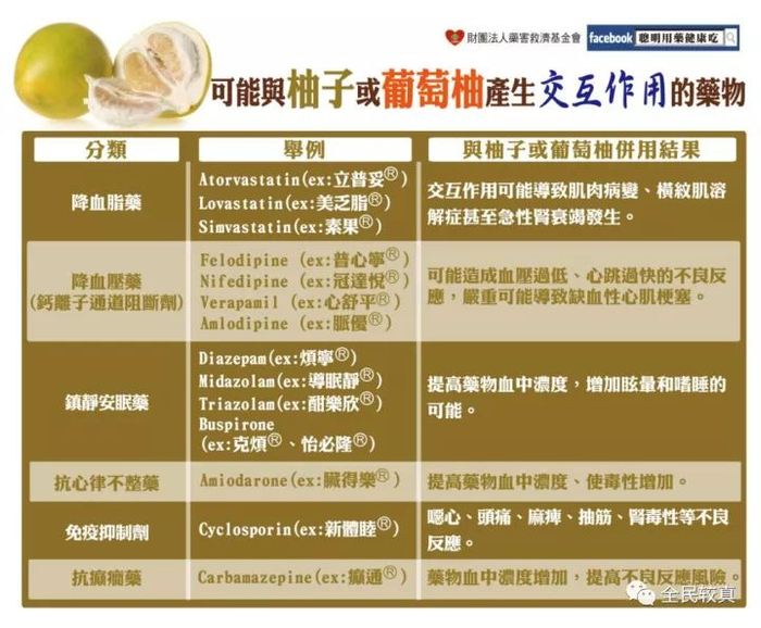 当然,药物和柚子一起吃造成的危害与柚子的品种和大家吃的量也有关系,并不是说吃一点就会导致猝死,网上的说法也存在夸大的嫌疑。但是,安全起见,建议大家平时在吃降血压药、降胆固醇的他汀类药物、抗过敏药、镇静催眠药、免疫抑制剂等药物时,尽量遵循医嘱,不要吃柚子,等病好了再吃也不着急。