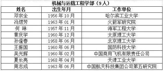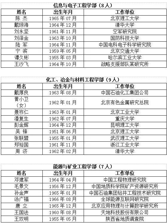 中国工程院2017年当选院士名单